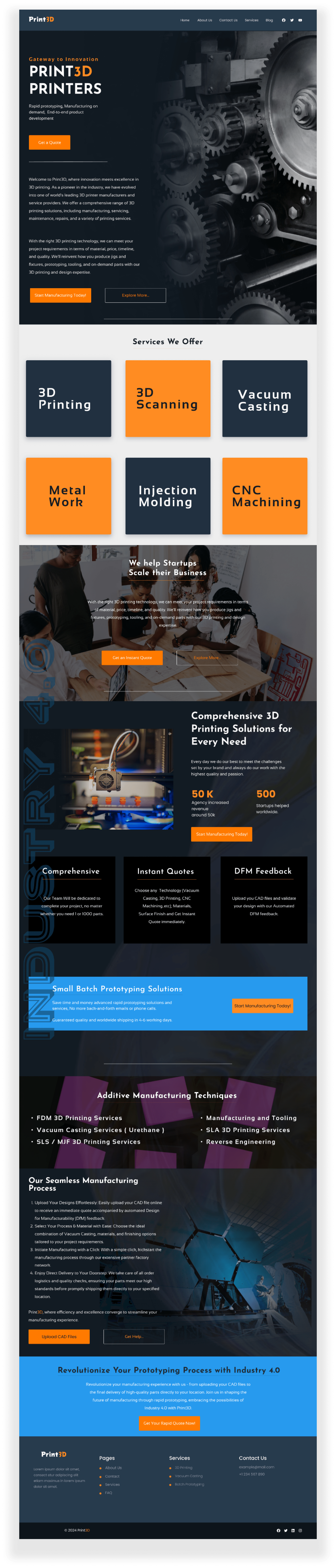 This is a homepage designed in Figma for a concept project – a website for 3D Printer business.
